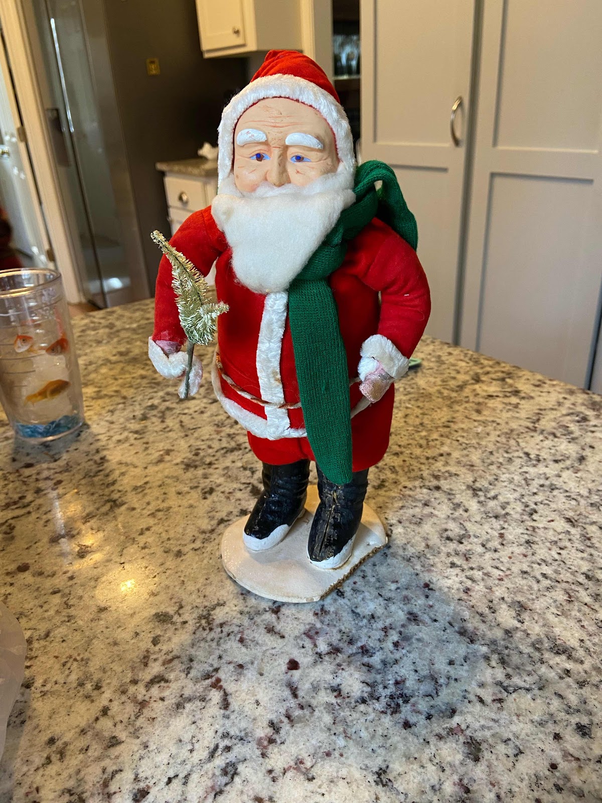 Found him!!! I was afraid I had thrown old Santa away when we were packing Mom’s apartment. Found him in a box with some witches. Bet he was glad to get out.
