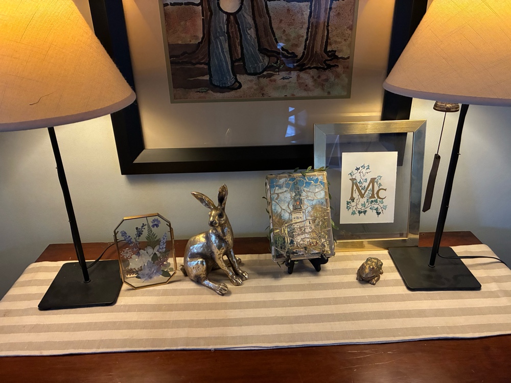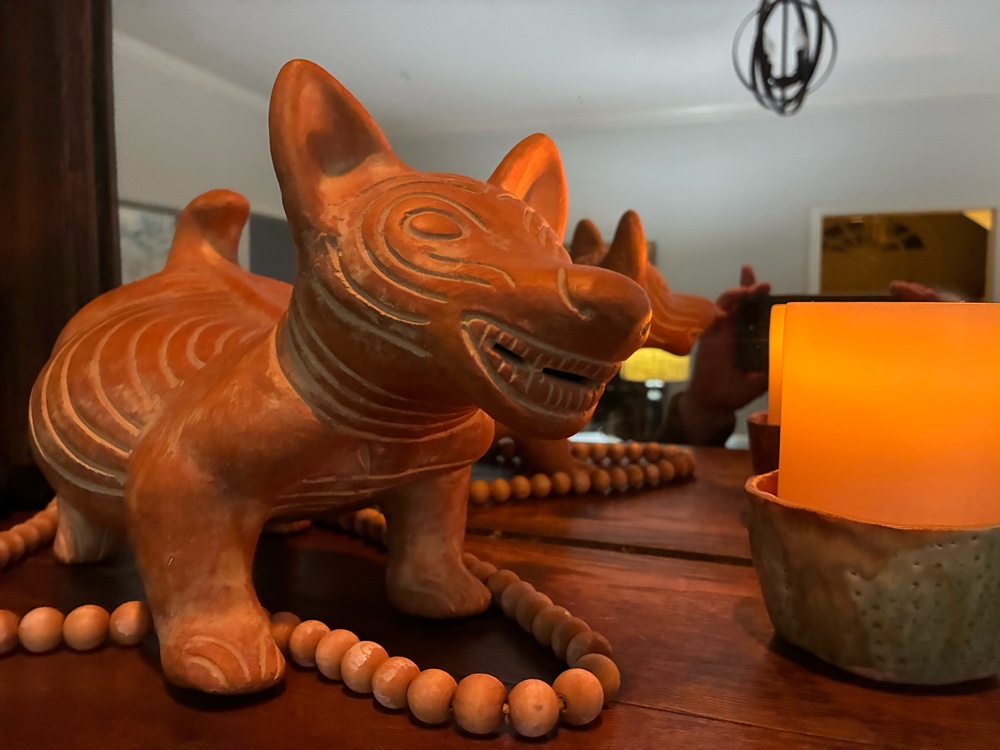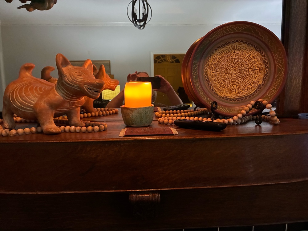 Decided to set mantel up with our honeymoon treasures from Mexico after Christmas was down.