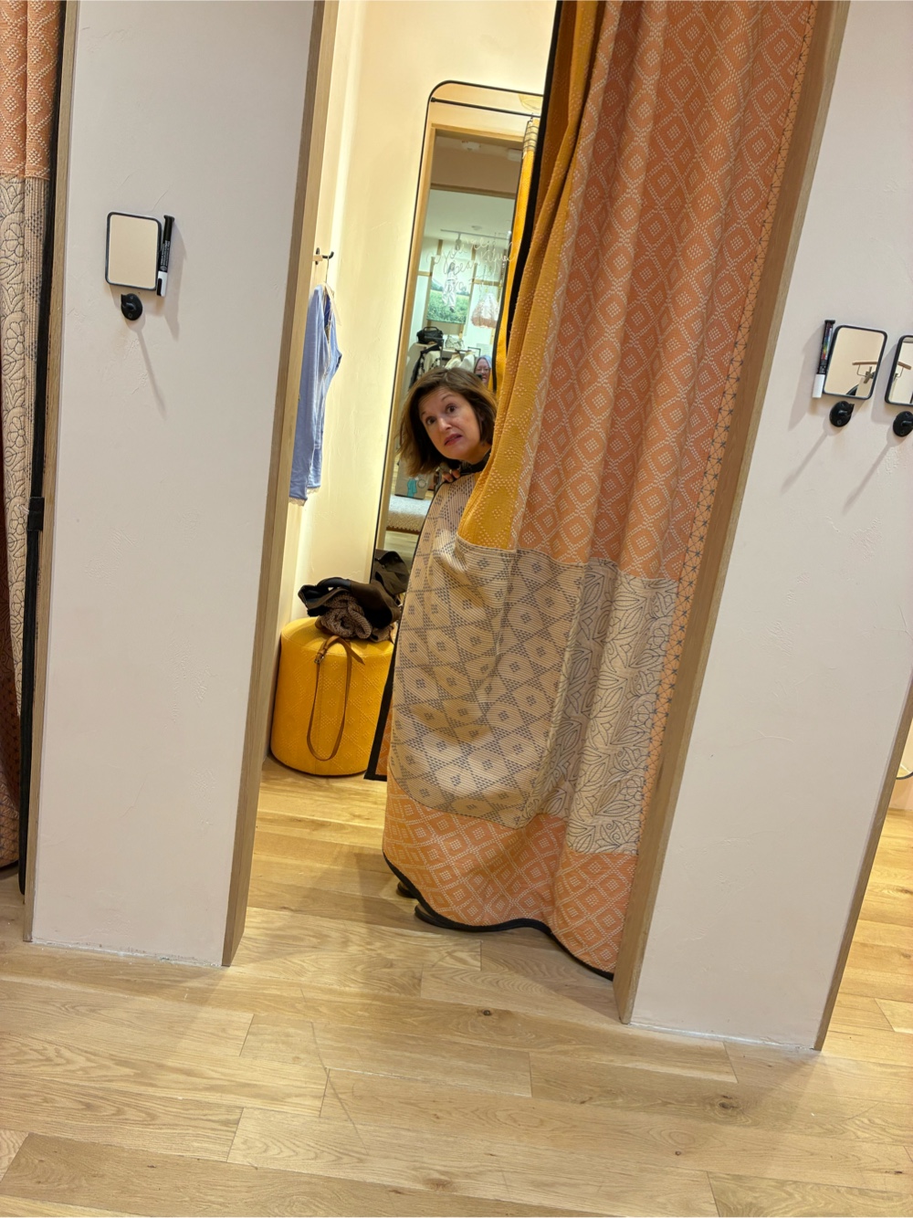 She looks stressed here but she found the perfect little black dress.